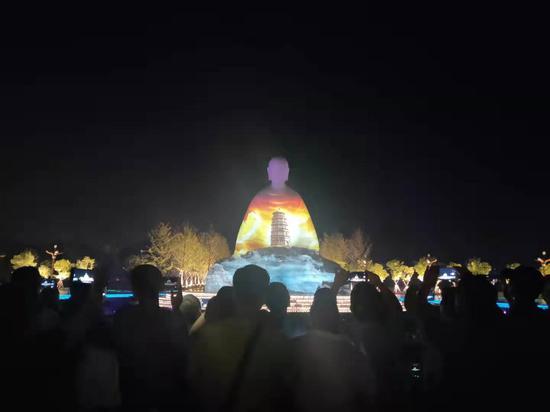 当天晚上,精彩的晚会和喷泉灯光秀还是吸引了不少游客前来观看,晚会表演节目分为盛世华章、弘扬传统文化、相约风度曲江、奋进新时代四个章节;灯光、喷泉、音乐交织在一起,展开了一个如梦似幻的世界,技术与艺术同奏,形式与文化合鸣的视听盛宴,成为曲江夜色中一道独特的风景。